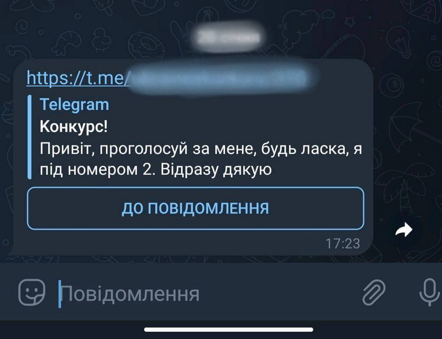 Поліцейськими зафіксовані випадки надходження повідомлень з проханням проголосувати за когось або переглянути фото чи відео нібито за участі людини. Після переходу за таким посиланням надходить запит про авторизацію, наприклад через Facebook, Instagram чи Telegram.