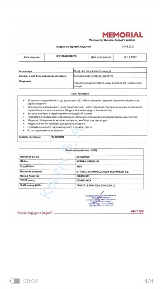«Терміново потрібна ваша допомога! Часу обмаль. Звертаємось до вас з проханням про будь-яку допомогу для Костіна В'ячеслава. У нього діагностували гострий недиференційований лейкоз.