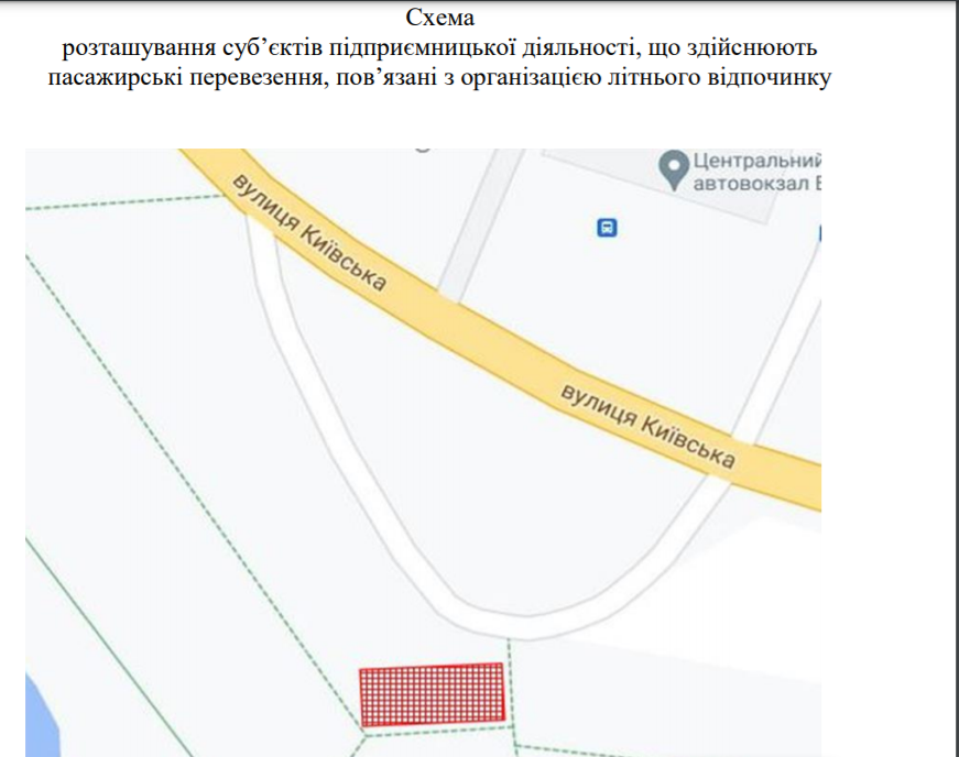 Виконком Вінницької міської ради визначив територію навпроти Центрального автовокзалу (вул. Київська, 8) місцем відправки транспортних засобів для здійснення нерегулярних пасажирських перевезень до місць літнього відпочинку.