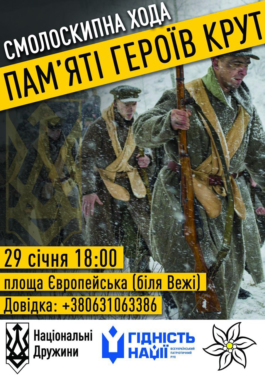 29 січня у Вінниці відбудеться смолоскипний марш. Проведуть його до 102-ї річниці бою під Крутами. До участі запрошують вінничан, щоб вшанувати подвиг молодих «крутянців».