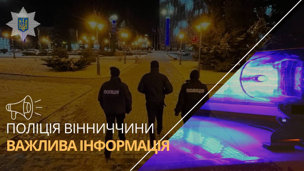 На Вінниччині під час святкування Нового року та Різдва Христового безпеку громадян та правопорядку забезпечуватиме півтисячі нарядів поліції. З метою забезпечення публічної безпеки та порядку на вулицях міст й області цілодобово патрулюватимуть піші та автопатрулі. Оператори служби 102 прийматимуть повідомлення громадян 24/7.