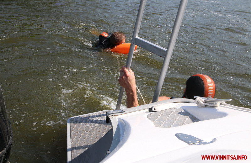 Веселий галас та плюскання води несподівано перервав крик із проханням про допомогу. Посеред водойми тонула людина. Водолази одразу кинулись на порятунок. Кинули мотузку та витягнули потопельника.