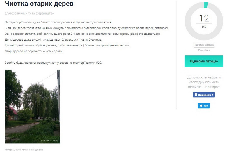 Наразі петицію підтримали 12 осіб. Щоб її розглянули у міській раді, потрібно 350 підписів.