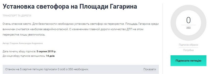 Щоб петицію розглянули, потрібно зібрати 350 підписів.