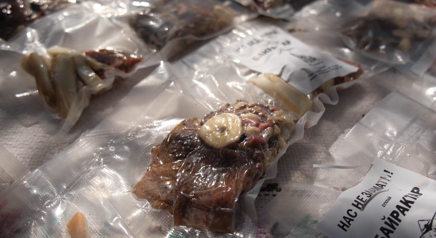 «Сухпайок повинен бути по-перше компактним, по-друге, довго зберігався, по-третє, бути смачним. Бачте, як ми його можем скласти, покласти навіть до кишені. Це дуже зручно», - говорить Олександр Панченко фахівець Іт-Академії.