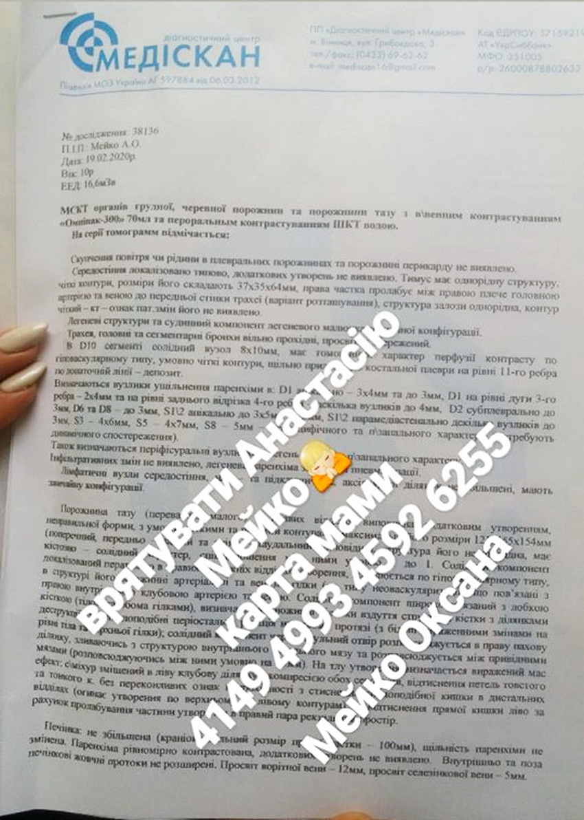 Закликаємо всіх небайдужих врятувати маленьке життя», - звертаються рідні Насті.