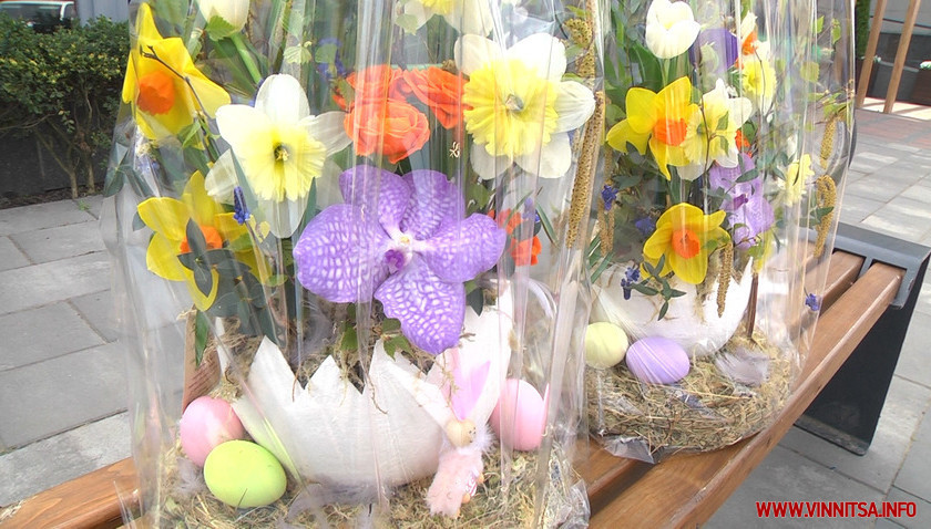 Напередодні Великодня у квіткових дизайнерів Вінниці замовляли квіткові композиції прикрашені символікою цього свята. Одну з таких репортер нашої редакції випадково помітила на вулиці міста.