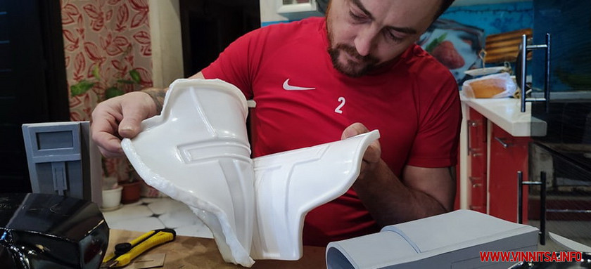 «Кожна деталь – це «матриця» з яких знімаю силіконові форми. У них заливаю пластик. Коли застигне, то фарбую. А як робиться «матриця». Це вже творчий процес. Спочатку детально вивчаю костюм персонажа по фото та відео. Від руки малюю ескіз та вирізаю його. За паперовими лекалами роблю форму і переношу на спеціальний матеріал, який називають «Єва». Це м’який матеріал, який при нагріванні може прийняти будь-яку завдану форму», - пояснює.