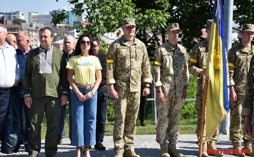У Вінниці, на Замковій горі, біля найбільшого в області прапору зібралися вінничани – влада міста та області, військові, правоохоронці.