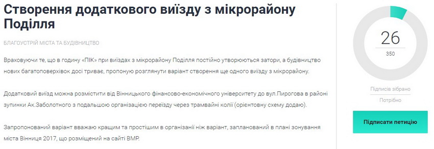 На даний момент петиція зібрала 26 підписів, щоб її розглянули у міській раді, потрібно 350 підписів.