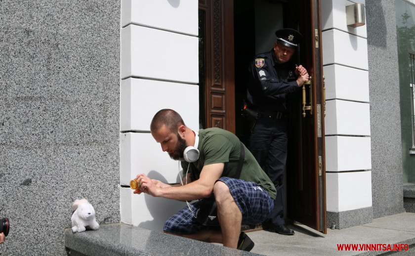 Сьогодні, об 11 годині, до головного управління поліції Вінницької області прийшов вінничанин Денис Котов. Він приніс іграшку, білого зайчика, і лампадку – в пам’ять маленького Кирила. Поруч розмістив аркуш паперу з надписом «Вбивці».