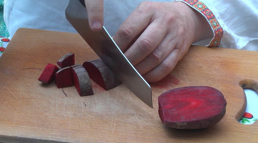Але спочатку два кілограми нарізаних овочів заливає чотирма літрами кип'яченої води. У темному місці відстоює три дні та періодично збовтуючи. Після цього сік відокремлює від макухи. Додає 500 грамів цукру і жменьку родзинок. За такою пропорції цукор підсипає ще два рази протягом тижня. Час від часу збовтуючи. Закриває кришкою для виноробства.