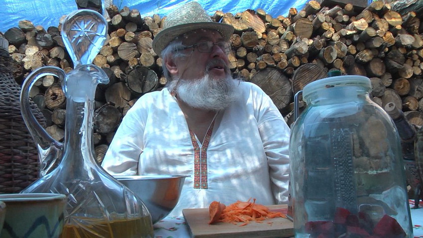Вино у його виконанні абсолютно натуральне. Використовує воду, цукор, або фруктозу, живі бактерії цитруси та родзинки. Основний матеріал збирає у власному садку. А також і на городі. Буряк нарізає великими кубиками або моркву дрібнить на тертці не для ароматного борщу - через кілька місяців з овочів буде вино.