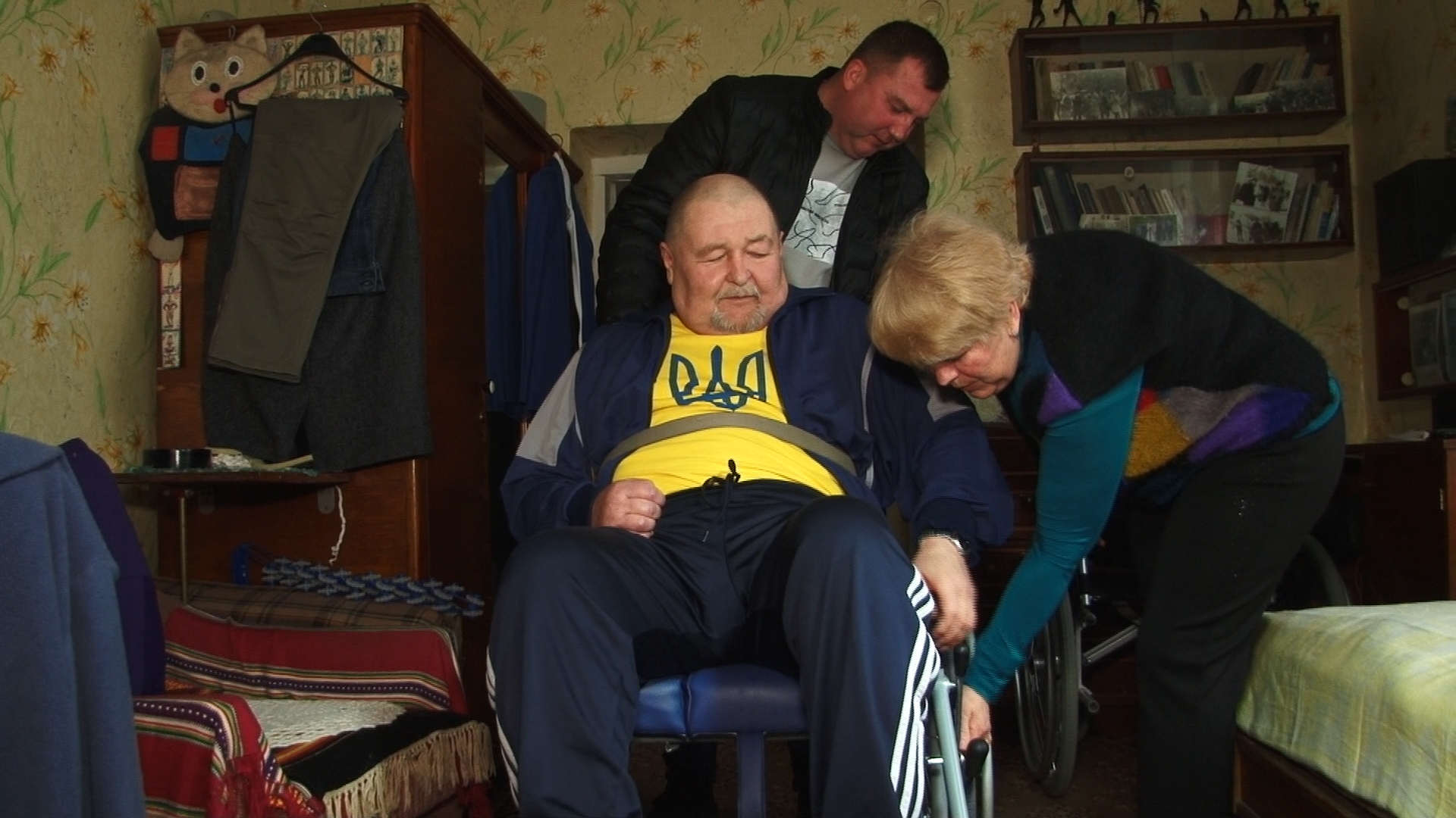 Наталія та Леонід Тимофеєви жили у Нікополі. Три роки тому в чоловіка стався інсульт. Він майже не ходить. Виїхати з міста самостійно не могли. Наталія пригадує, сильно обстрілювати Нікополь росіяни почали у липні 2022 року. Гатили по житловим кварталам градами. Вікна вона затуляла подушками, аби осколки скла не сипались на чоловіка, який не міг підвестися з ліжка.