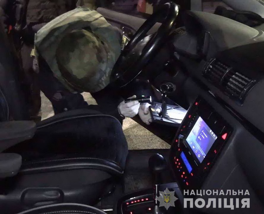 Під час огляду автівки слідчі з залученням поліцейських-вибухотехніків у машині, вилучили револьвер, перероблений для стрільби бойовими набоями, глушник до вогнепальної зброї, близько півсотні набоїв, ножі, кастет, биту та пакунок з наркотками.