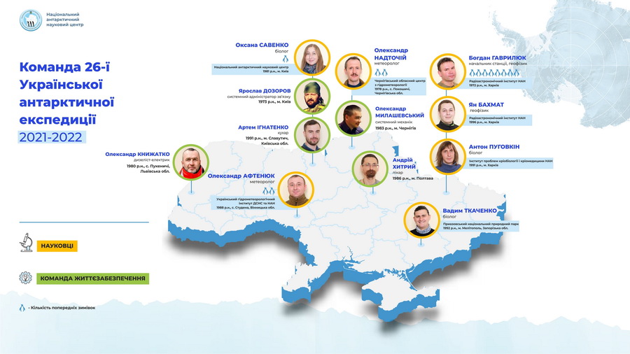 «Торік ми відправляли в Антарктику наймолодшу експедицію за всі роки – середній вік учасників був 37. Цього року, в 26-й УАЕ, середній вік ще менший – майже 36, а наймолодшому учаснику в квітні виповнюється 25 – тобто він ровесник передачі нашої станції Україні від Великої Британії. Тож ми продовжуємо відкривати антарктичну науку для молоді, даючи їй більше шансів самореалізуватися й долучитися до проведення світових досліджень, залишаючись українськими вченими», – зазначив директор Національного антарктичного наукового центру Євген Дикий.