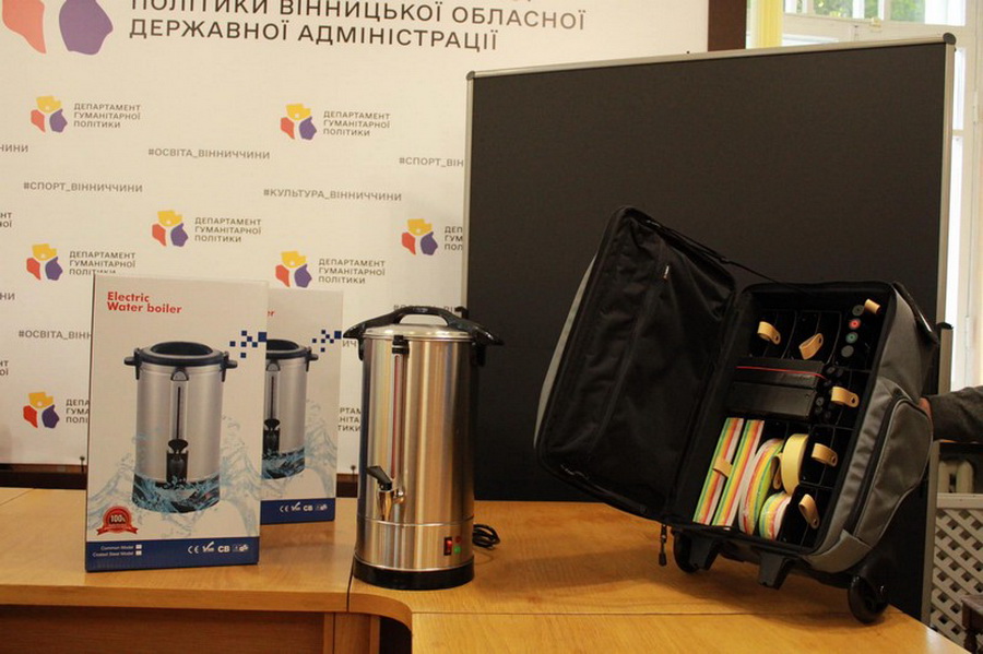 Зокрема, навчальним закладам Вінниччини передано комплект освітнього обладнання до якого входять 4 професійні модераційні дошки, візок для семінарів та сумка для складної модераційної дошки», - зазначила Наталя Заболотна.