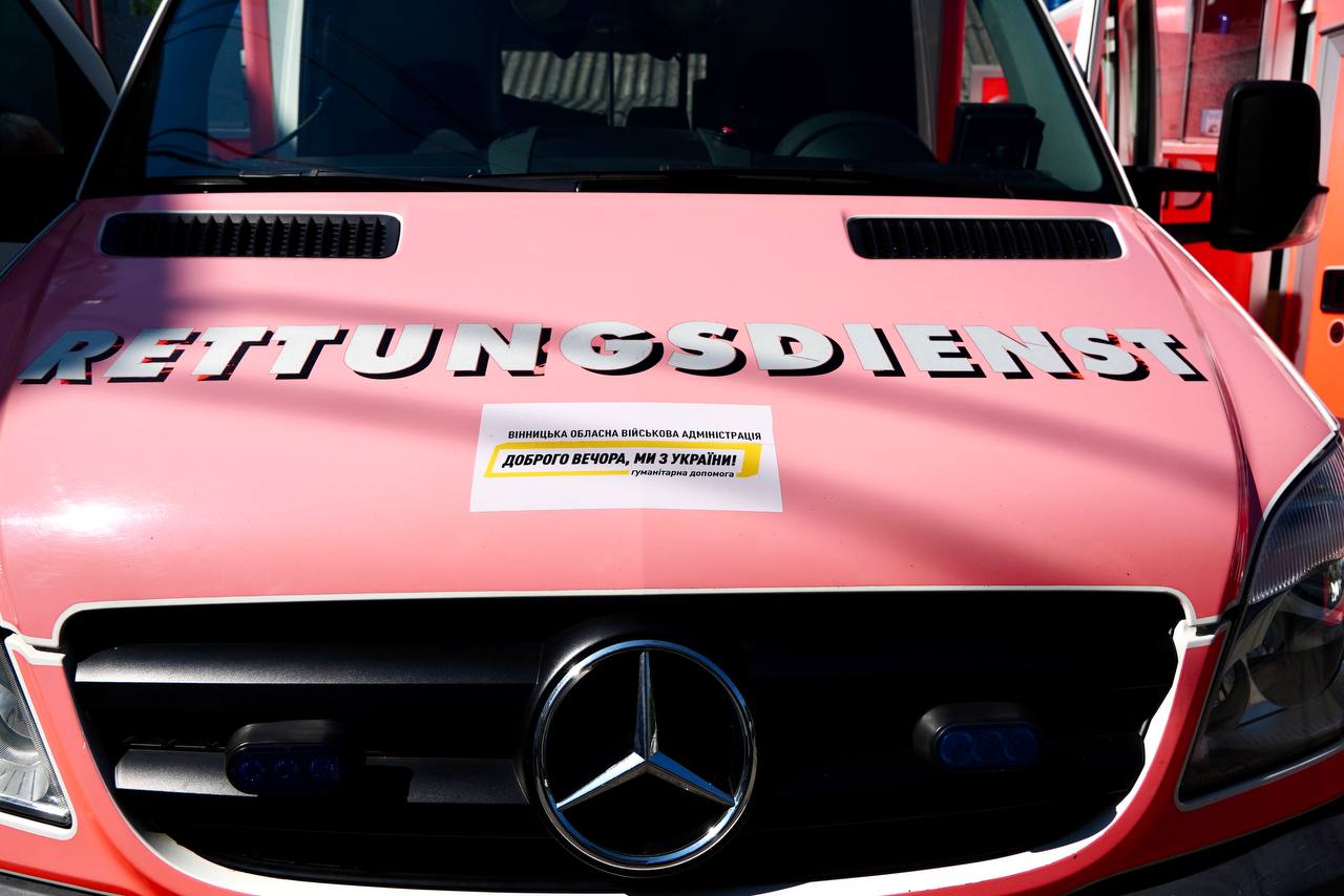 Вінниччині передали ще два автомобілі швидкої допомоги марки Mercedes Benz з Німеччини. Автівки вже укомплектовані усім необхідним та використовуватимуться, як операційні на колесах. Їх передали Вінницькому обласному центру екстреної медичної допомоги та медицини катастроф.