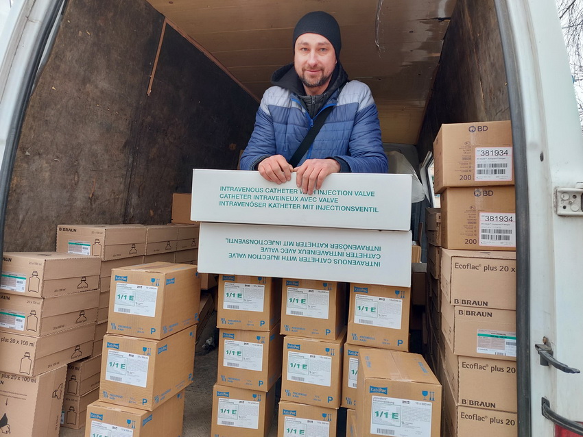 Гумвантаж до Вінниці зі Львова допоміг доправив доцент кафедри хірургії №1 Вінницького медичного університету ім. М. І. Пирогова Андрій Форманчук.