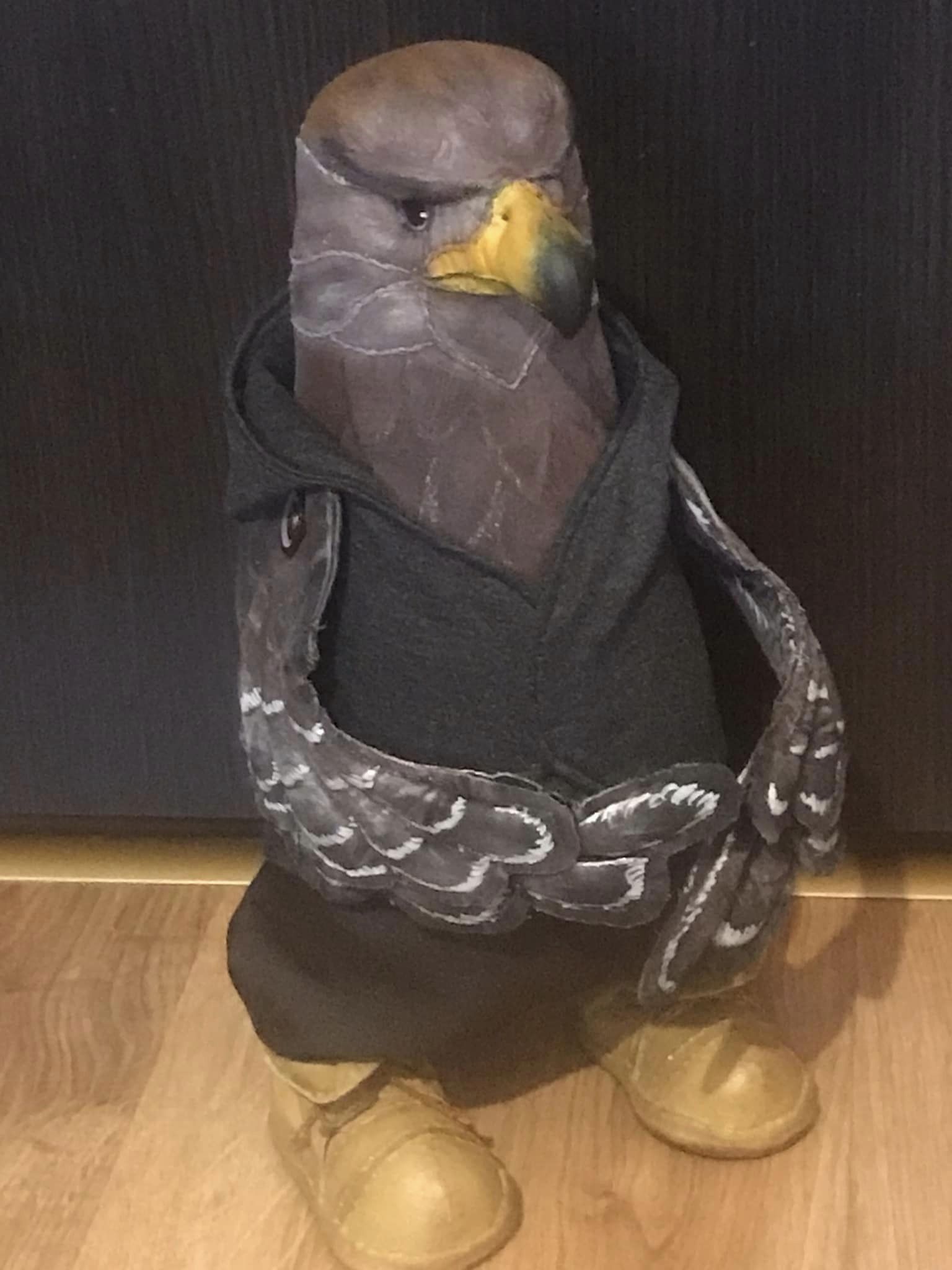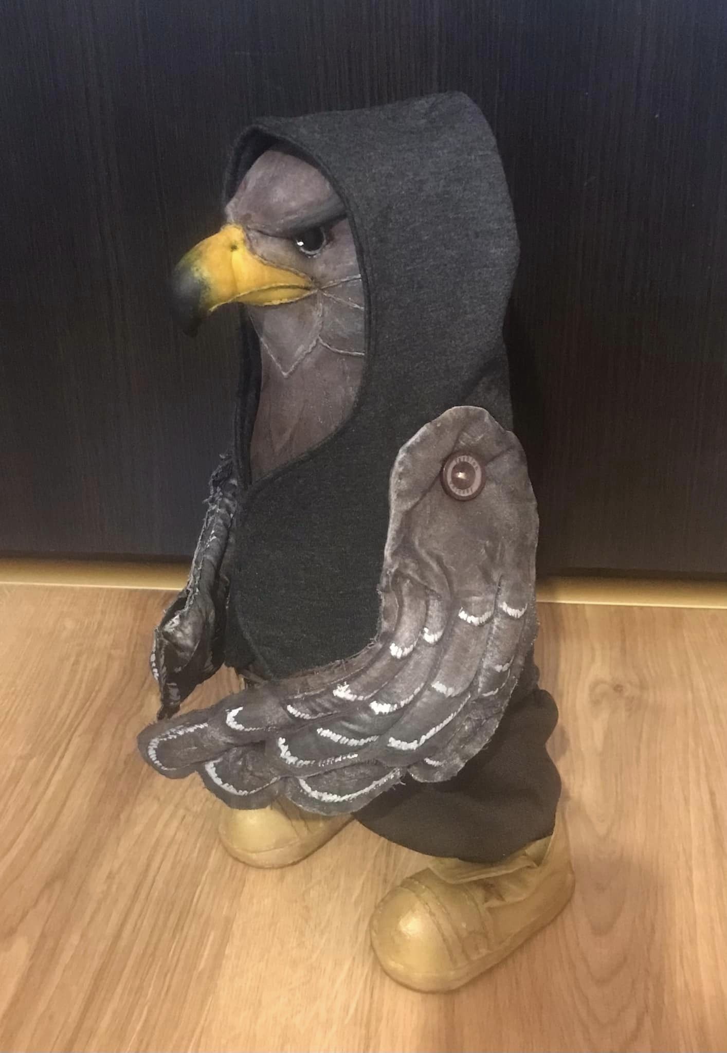 Робила бойового птаха два дні, бо дуже хотіла побачити кінцевий варіант. Лялька 30 сантиметрів заввишки. Одяг за кольором максимально наближений до того, в якому нагороду отримував Володимир Зеленський.