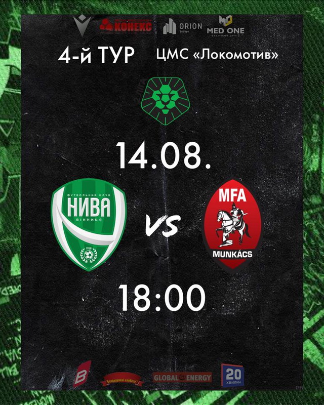 14 серпня вінницька «Нива» вдома проведе матч із «Мункачем» (Мукачево). Гра 3 туру чемпіонату України (Друга ліга) пройде на Центральному міському стадіоні.