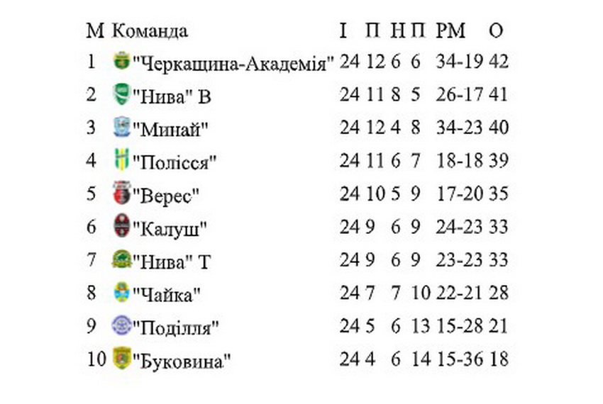 Чемпіонат України з футболу. Друга ліга. Група «А». Турнірне становище на 13 травня.