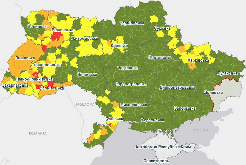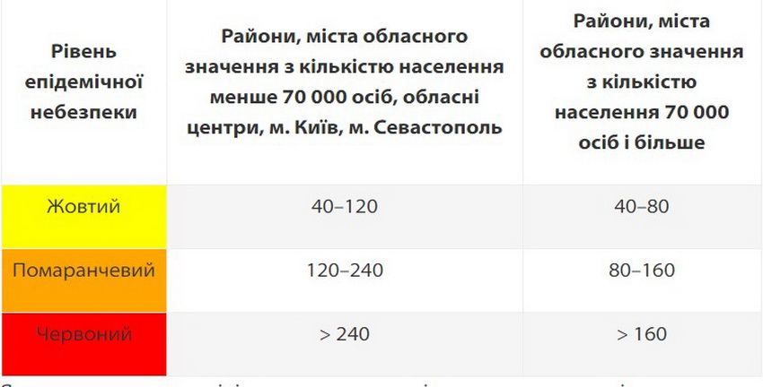 3. Показник захворюваності на COVID-19 за 14 днів перевищує базовий рівень (40 нових випадків на 100 000 населення):
