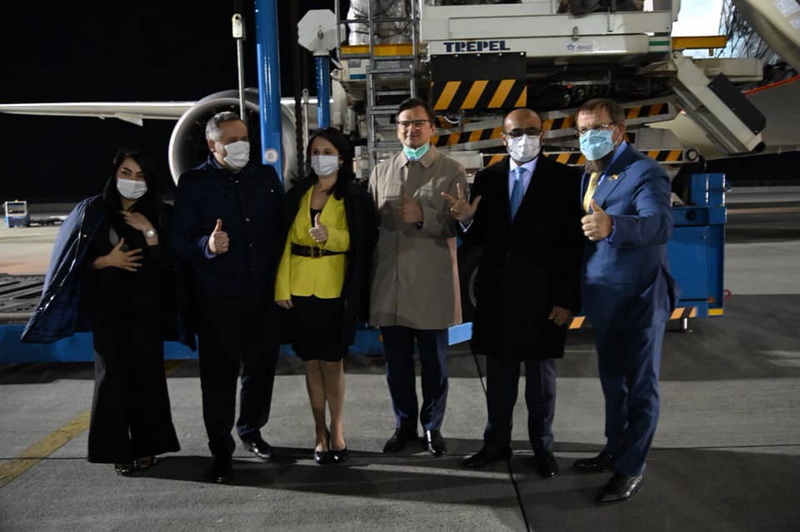 Зустрічали авіарейс міністр закордонних справ Дмитро Кулеба, заступник голови Офісу Президента Ігор Жовква, Надзвичайний і Повноважний Посол ОАЕ в Україні Салем Ахмед Аль-Каабі і народні депутати Олександр Ковальов та Ірина Борзова.