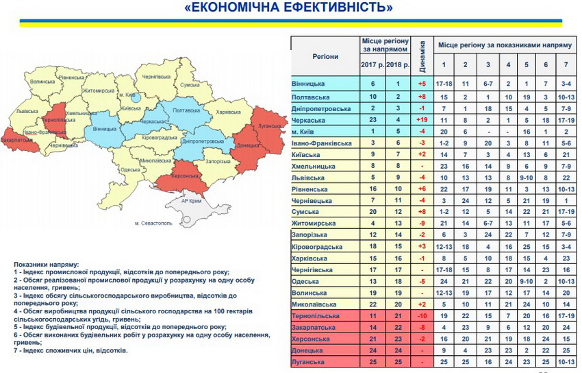 Мінрегіон оприлюднив результати моніторингу соціально-економічного розвитку регіонів за 2018 року. Найкращі показники у м. Київ, Харківської, Рівненської, Вінницької та Дніпропетровської областей. Найнижчі показники мають Миколаївська, Одеська, Чернігівська, Донецька та Луганська області.