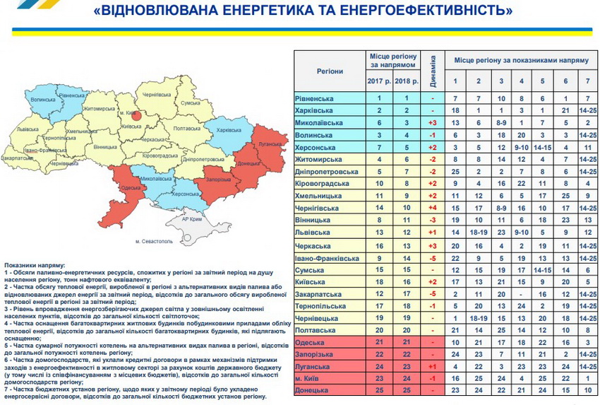 «Відновлювальна енергетика та енергоефективність» - Вінниччина втратила три позиції та посідає 11 сходинку.