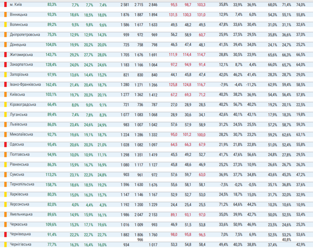 В «помаранчевій» зоні – Вінницька, Дніпропетровська, Донецька, Київська, Львівська, Миколаївська, Полтавська, Сумська, Тернопільська, Хмельницька, Черкаська області.