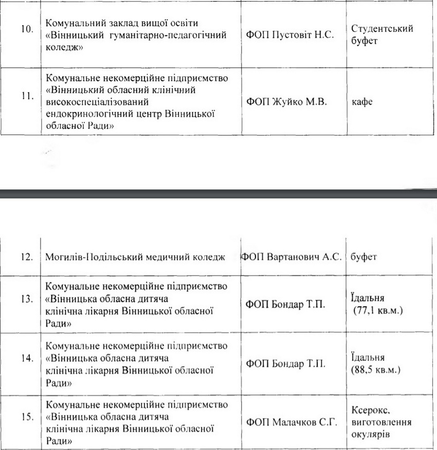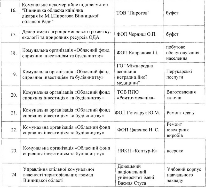 Перелік орендарів, які не працювали в період карантину і будуть звільнені від орендної плати