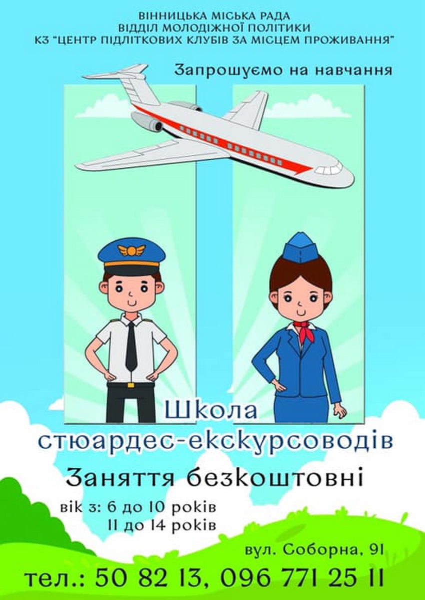 У Вінниці в Школу стюардес та екскурсоводів оголошують набір дітей. Безкоштовні навчання проходитимуть у приміщення на Соборній, 91.