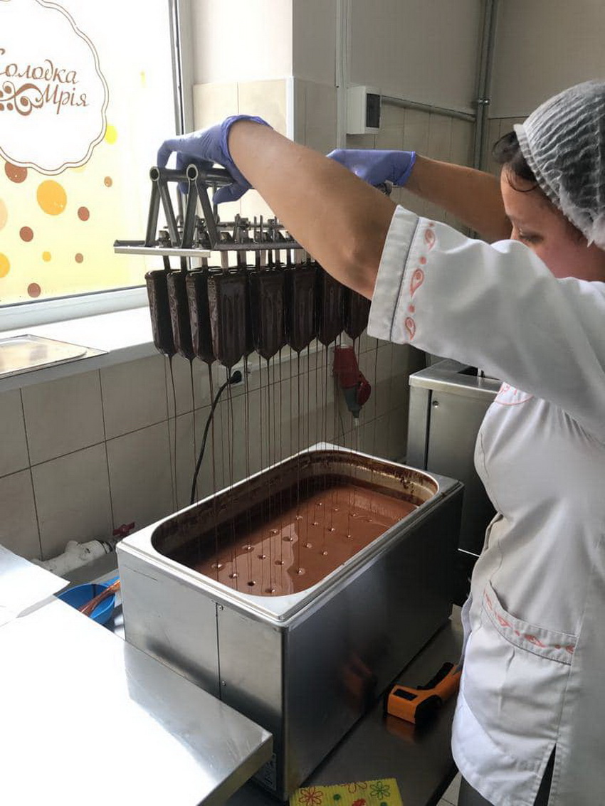 «Смаколики створені з натуральних продуктів та покриті шаром чорного шоколаду. 1000 шт щодня сходять з конвеєра. Для виробництва морозива працевлаштовано 12 людей», - зазначив посадовець.