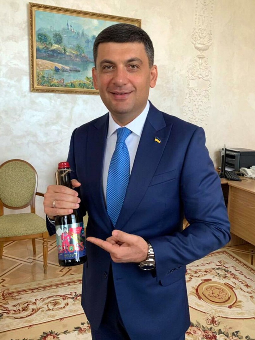 «Як і обіцяли - перші дві пляшки з лімітованої серії супергеройського крафтового пива «Gross Man» від броварні Звір Beer вручили особисто головному герою та головній людині в країні - Volodymyr Groysman», - написали на сторінці броварні у «Фейсбук».