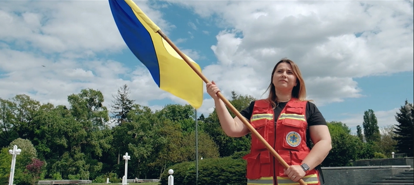 У відеокліпі, медсестри і лікарі створили у Вінниці на площі «живе» серце, в центрі якого прапори України та Вінницької області.