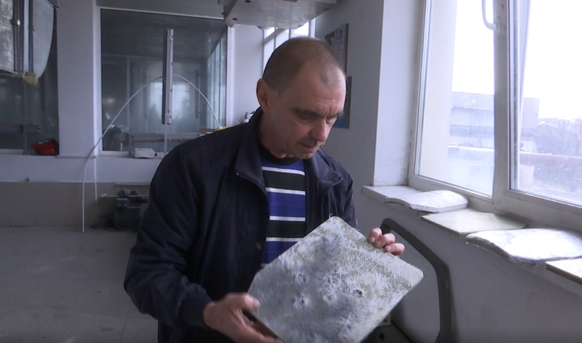 «Осколки ж вилітають куди, в руки, в шию… Тобто, нам потрібно робити так, щоб їх зупинити. За допомогою цієї штуковини (пластини, покриті смолою – ред.), воно все зупиняється. Це і дешево», - каже Ігор.