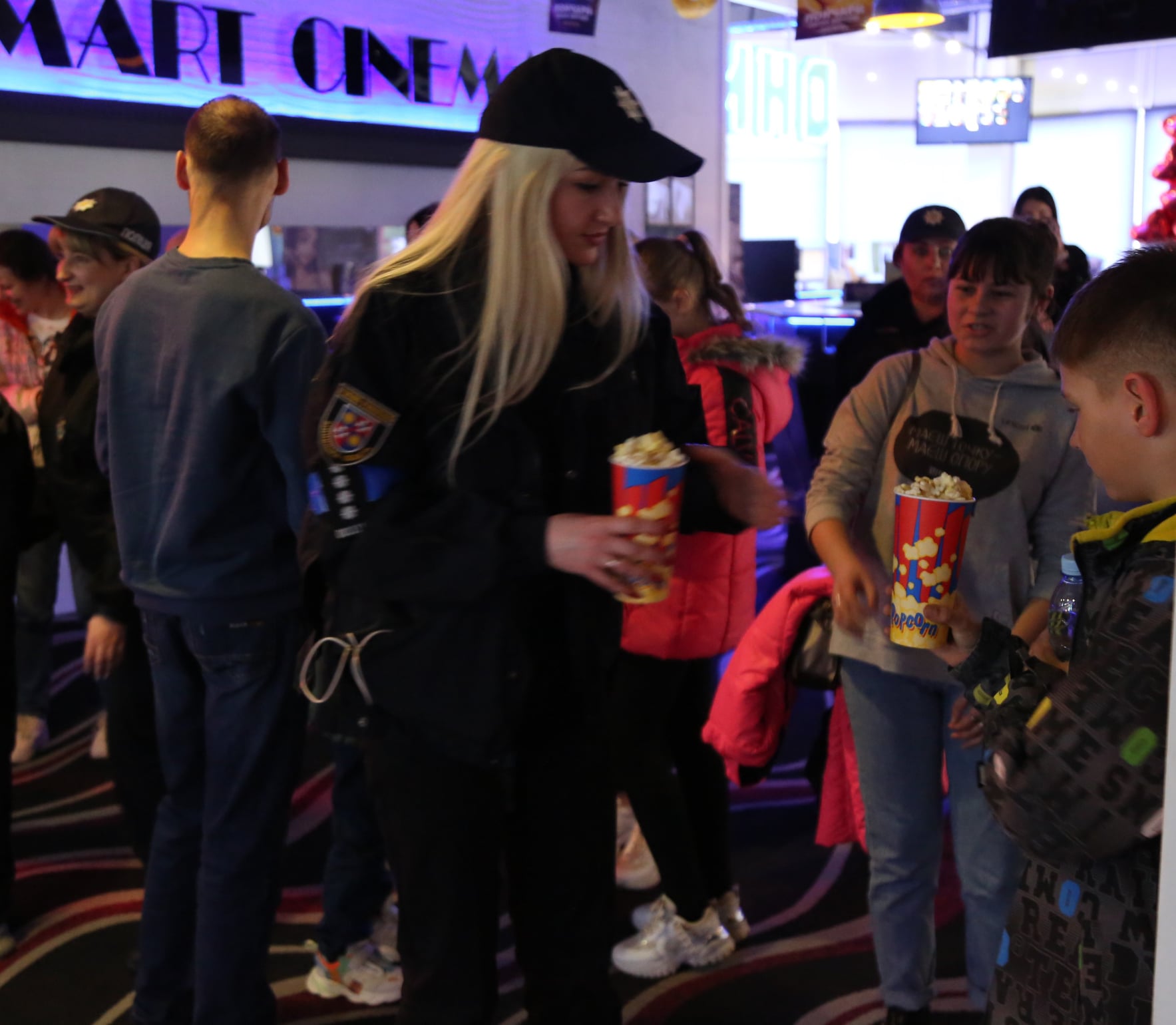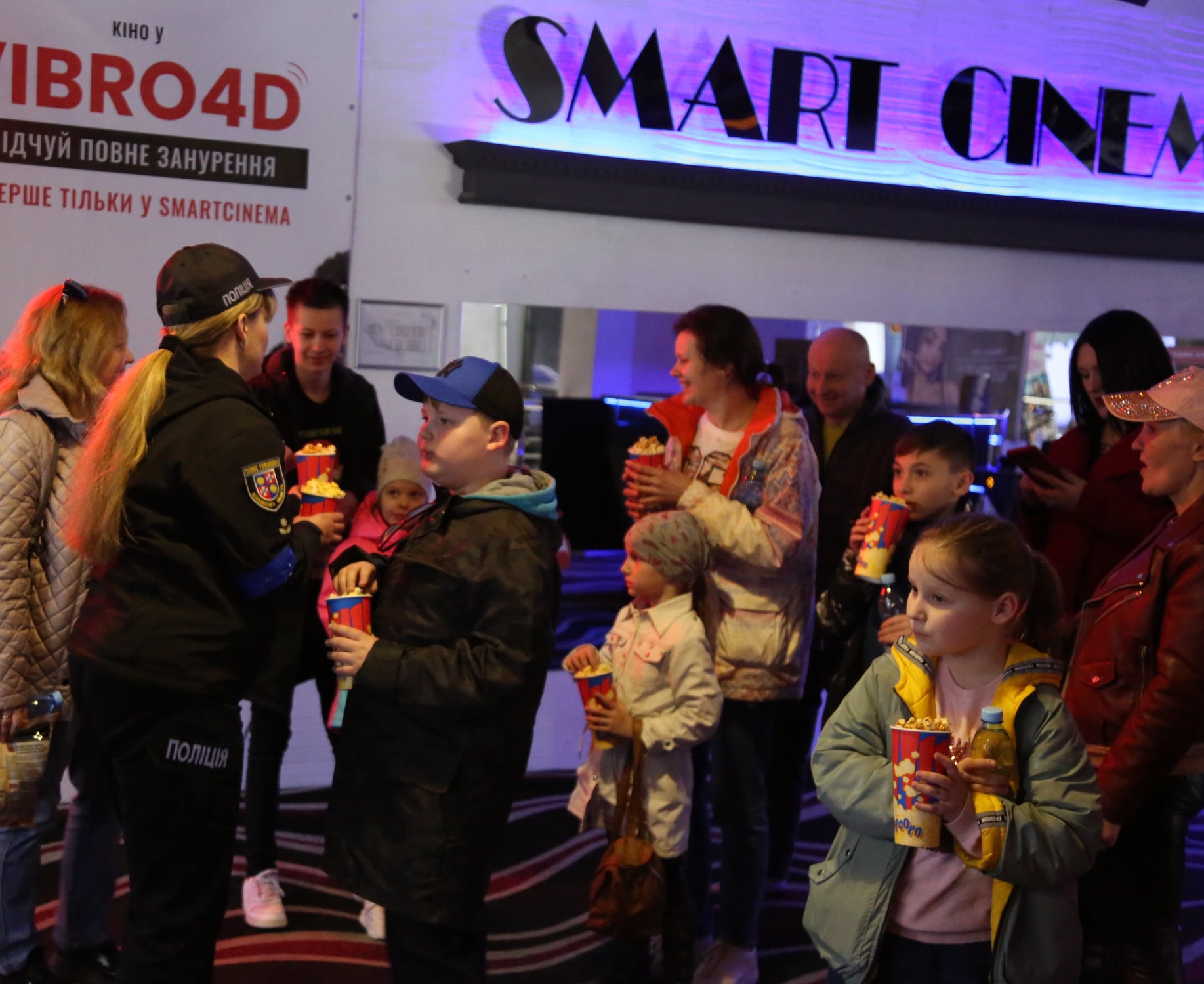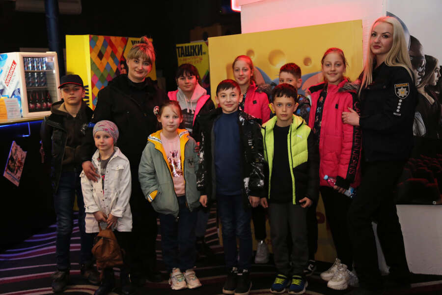 Вінницькі поліцейські продовжують підтримувати та допомагати дітям, що приїхали з регіонів де ведуться активні бойові дії. Щоб зняти у них психологічну напругу спричинену війною, їм все частіше влаштовують різні розваги. Цього разу дітей-переселенців повели в кіно.