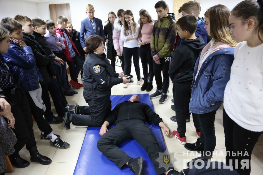 Інспектор тренінгового центру Наталя Скорик провела з дітьми заняття з надання першої медичної допомоги людям, які її потребують. Школярі засвоїли , що вчасно та правильно надана перша допомога постраждалому допоможе зберегти йому життя.