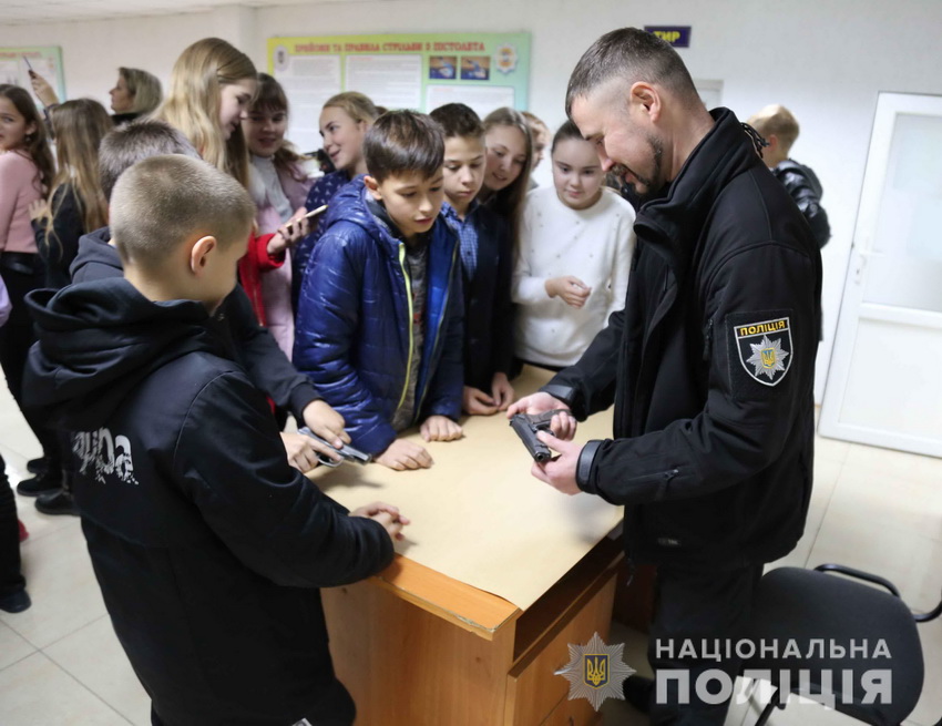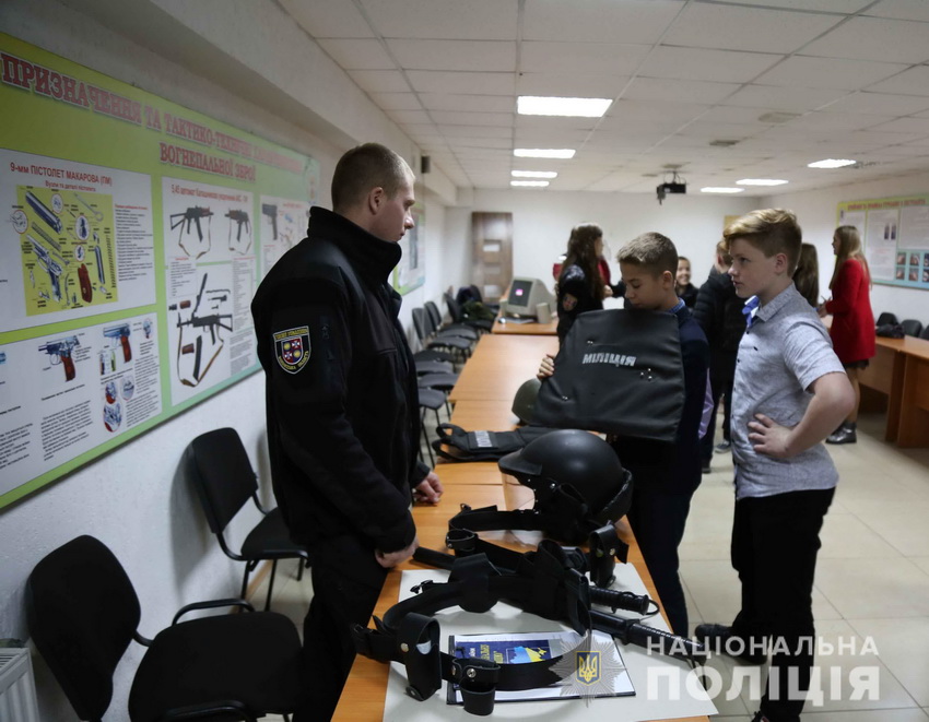 Екскурсія розпочалась з дружньої бесіди з ювенальними поліцейськими обласного главку. Керівник відділу Людмила Кузнєцова нагадала школярам про правила безпечної поведінки на вулиці, радила, як налагодити дружні стосунки з однолітками, врегульовувати конфліктні ситуації в колективі. Також розповіла про поняття булінгу та пояснила, як не стати жертвою цькувань.