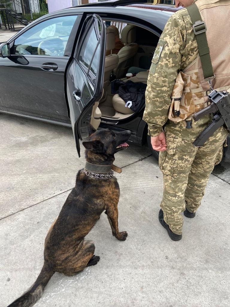 «Під час здійснення огляду автомобіля, який їхав на в’їзд в Україну, спрацював службовий собака, натренований на пошук зброї, боєприпасів та вибухівки.