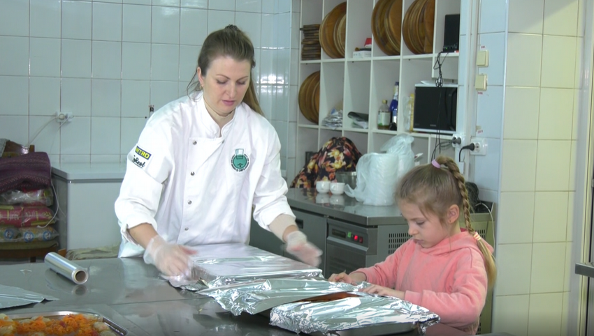 На обід кухарі готують близько тисячі порцій, на вечір – близько двохсот.