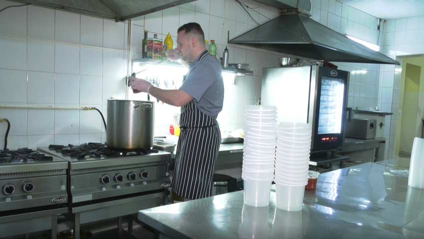 «В нас перша розвозка до обіду. Вже о 12:00 машиною обіди розвозимо в лікарні, пологові та на блокпости, друга розвозка починається о 17:00 годині», - розповідає Тарас.