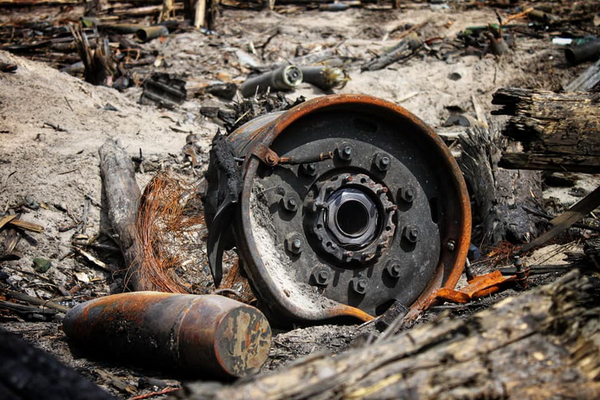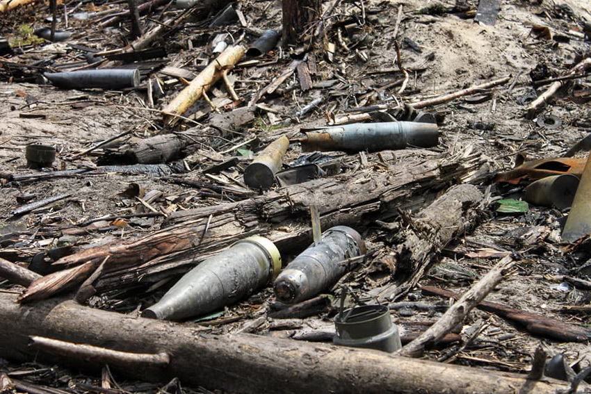 «Зараз ми знаходимося на позиціях, де були рашисти та їх польовий артилерійський склад, який знищили наші артилеристи, Ліс усіяний великою кількістю «градами» та не розірваними боєприпасами.