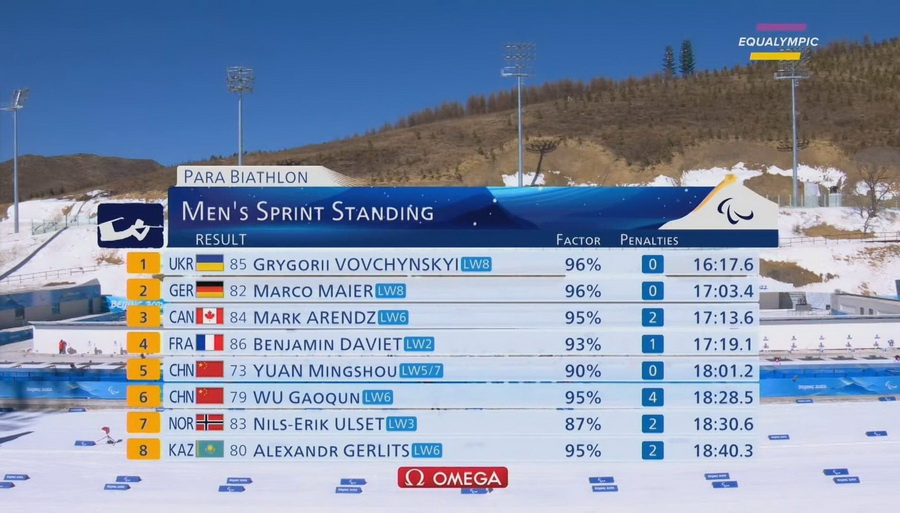 У гонці з біатлону в класі стоячи в спринті на 6 км Григорій Вовчинський виборов золоту медаль.