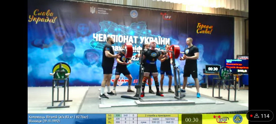 Дві перемоги здобули вінницькі пауерліфтери з Чемпіонату України 2023 року. У ваговій категорії до 74 кілограм Куцан Дем'ян з містечка Бар перемагає себе та підкорює норматив Майстра спорту України. А Коломієць Віталій виборов золото та титул Чемпіона України.