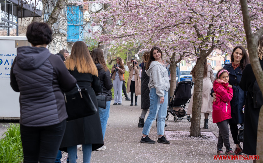 Якщо з появою перших квітів перехожі фотографували сакури, то зараз на алею приходять щоб зробити світлини у рожево-білому цвіті.