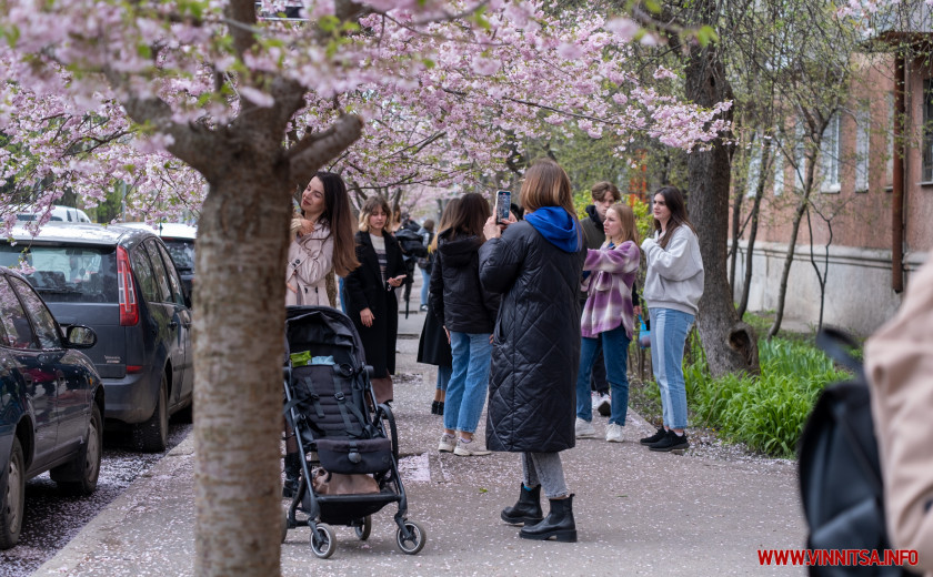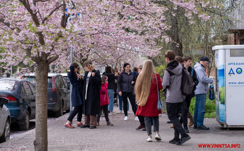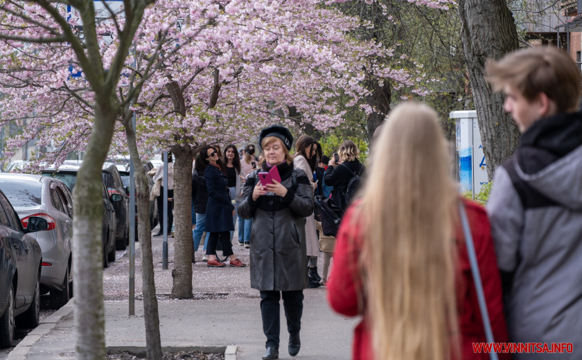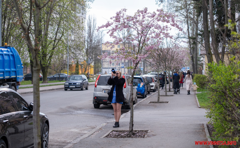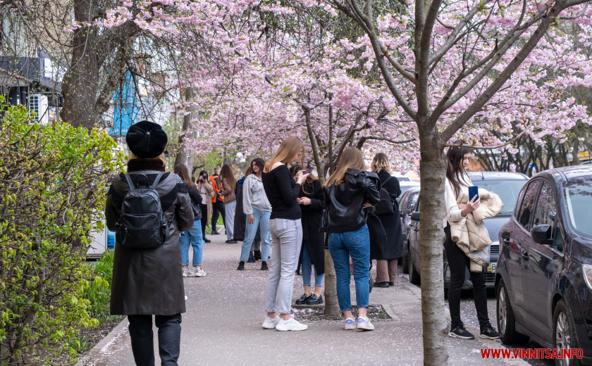 У Вінниці на Вишеньці тиждень тому зацвіли сакури. Дерева вздовж вулиці Порика створили неймовірної краси фотозону в рожевих відтінках.