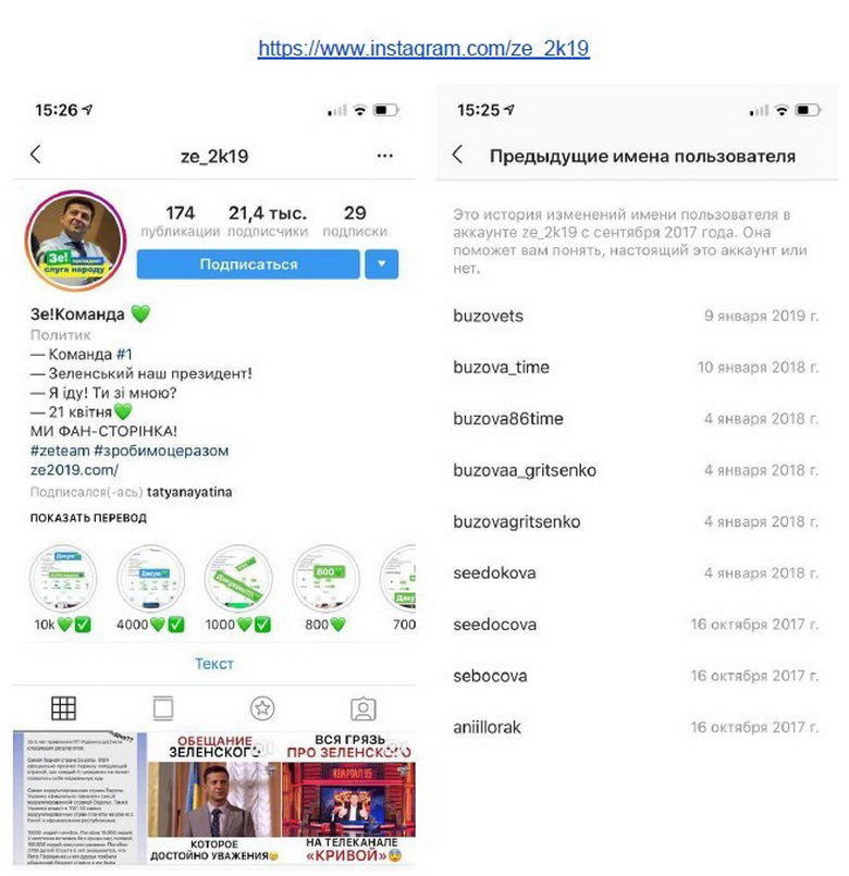 Вінницькі журналісти провели розслідування сторінок прихильників команди Зеленського в «Instagram». Дослідження показує, що аби створити уявлення про велику кількість прихильників кандидата у президенти Володимира Зеленського, його команда використала акаунти з уже сформованою аудиторією. Інколи за кілька років.