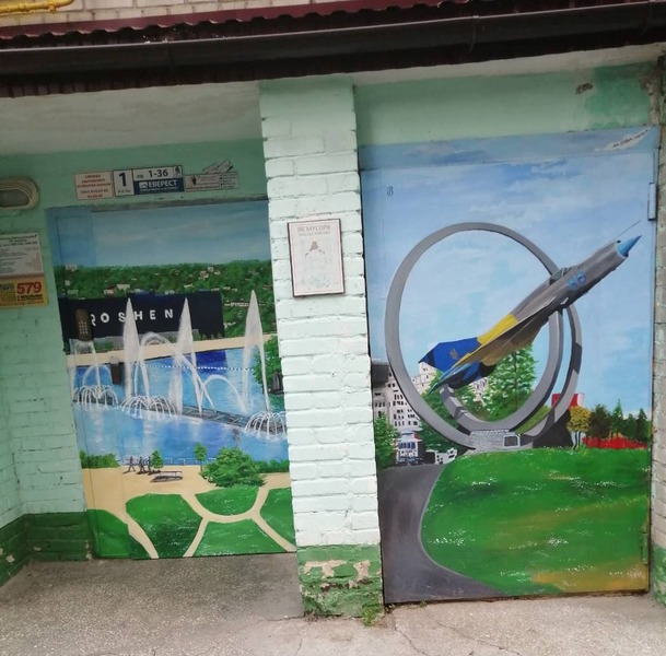 «Ідея розмалювати саме двері була давно. Спочатку замінили старі на такі, на яких можна малювати. Залізне полотно створити. Облаштували майданчики перед ними. Потім довго шукав художника», - вже розповідав Вінниця.info Олександр Валентинович.